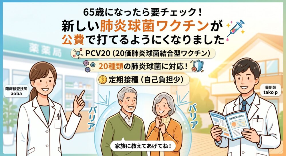 2026年4月1日より、高齢者向けの定期接種に新しいワクチン「PCV20(20価肺炎球菌結合型ワクチン)」が追加されました。これは非常に重要な変化です。